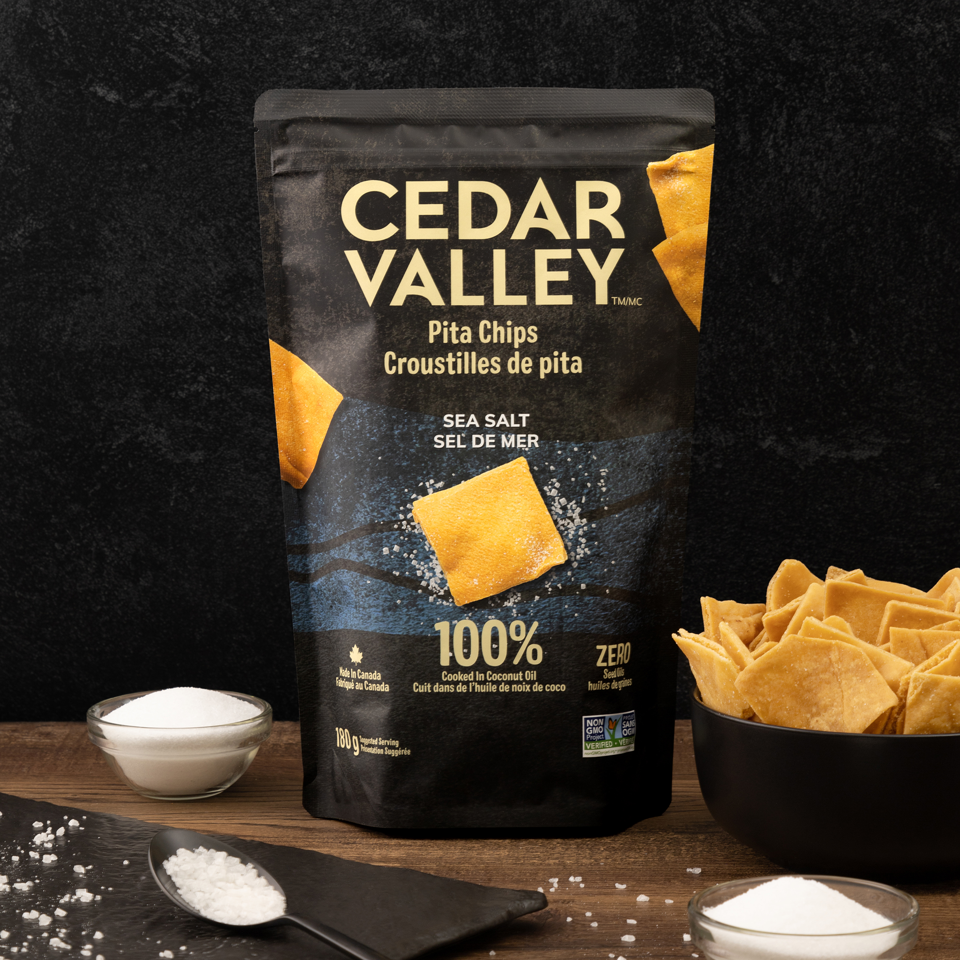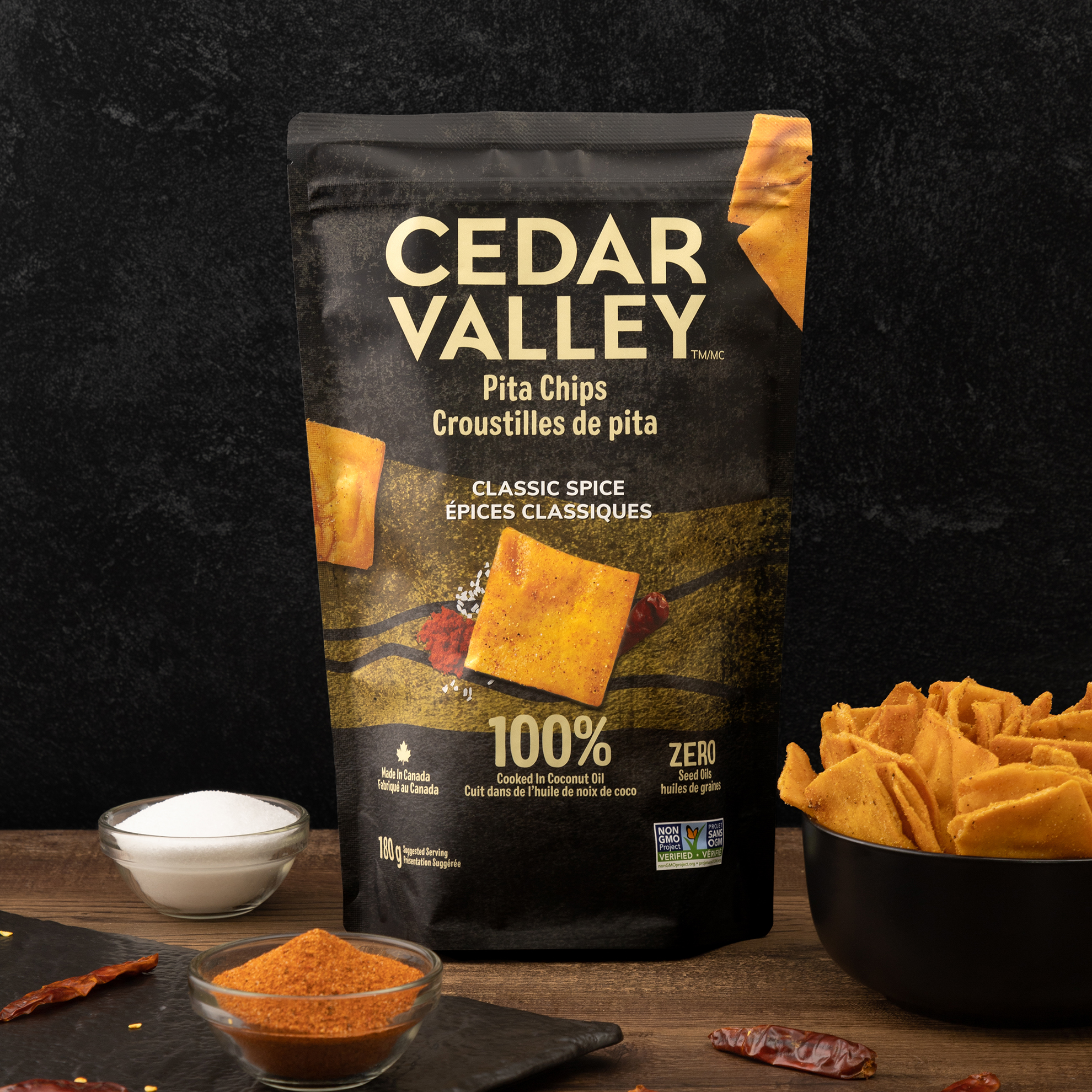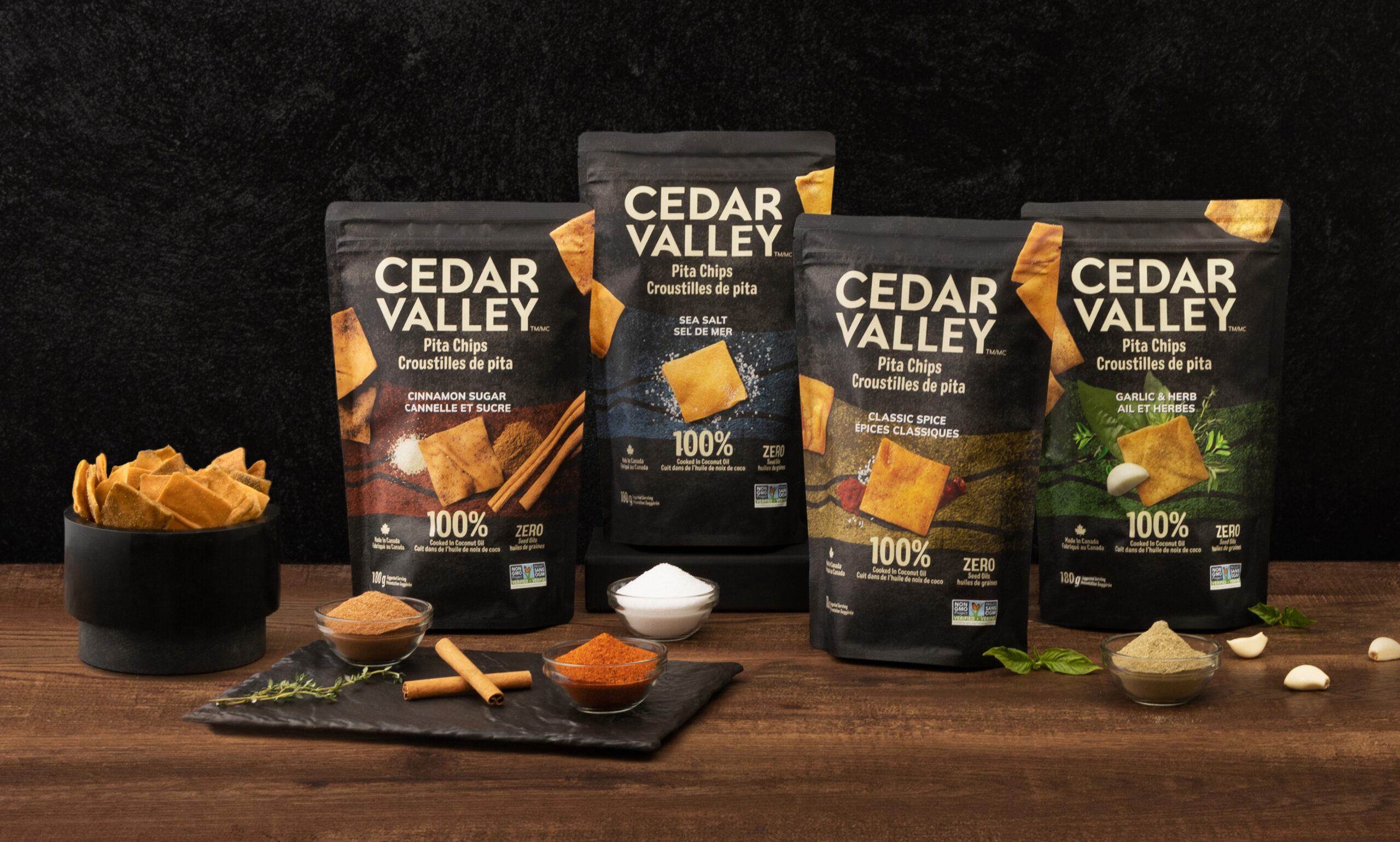 A new Canadian success story – founded by a young entrepreneur and his mother, Cedar Valley makes pita chips inspired by traditional Lebanese recipes. In an extremely busy category, we used research to ensure the packaging developed felt unique, authentic and differentiated. Through the creation of a custom graphic, connecting the brand to its Beqaa Valley origins, we were able a cohesive and expandable approach and recognizable brand no matter what section of the grocery store you’re in.
